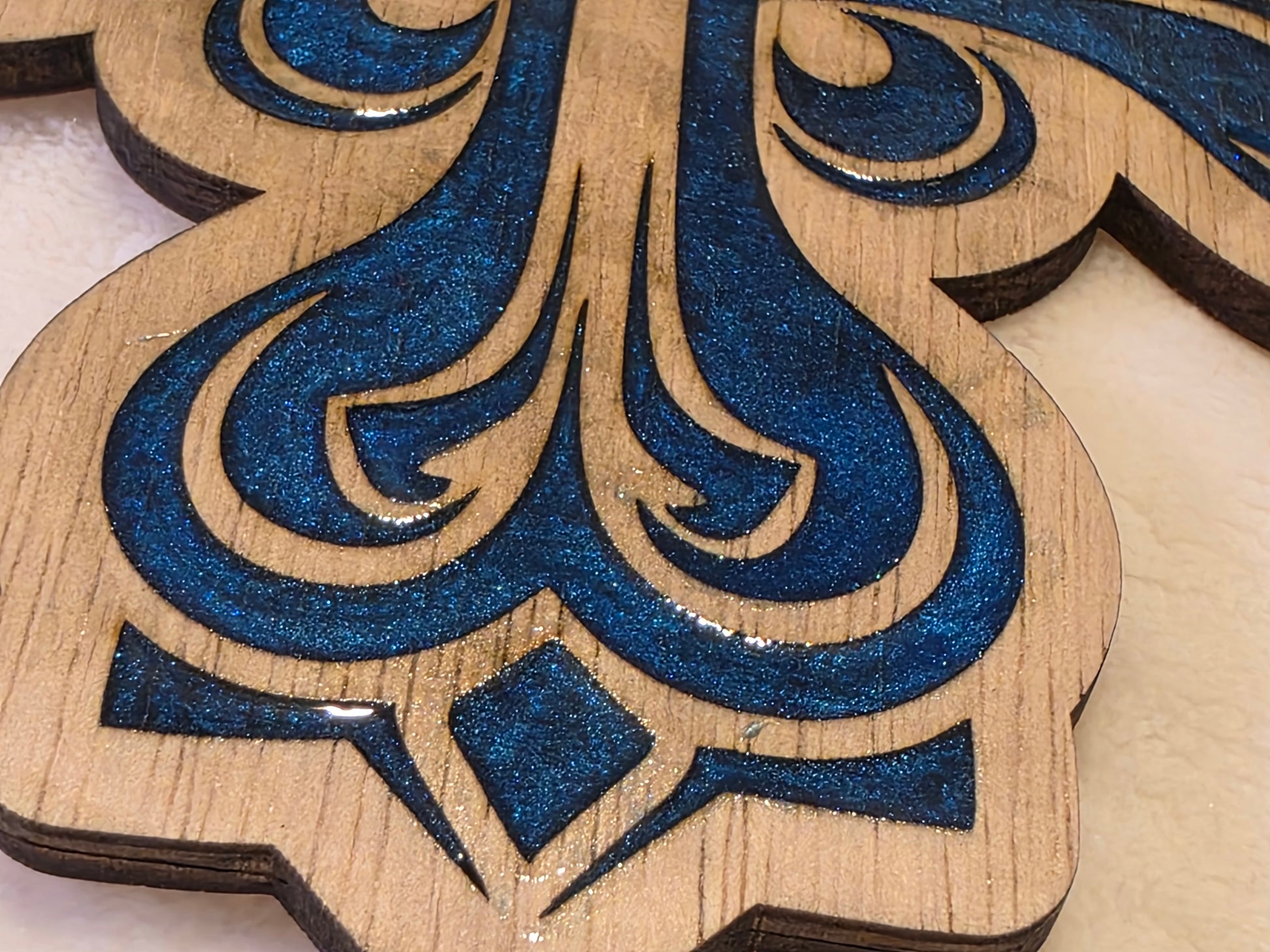 10.5 in height x 7 in width. 3 mm thick bass wood fill with resin.
